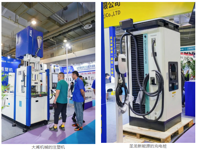 展会现场,新能源汽车相关展品成为亮眼存在,不少企业通过实际产品与业绩,展现了在新能源领域的布局与突破。杭州大禹机械有限公司负责人在采访中提到,近几年企业的增量扩张主要来自新能源汽车市场,“新能源车的三电系统里,我们的立式注塑机发挥了非常大的作用,特别是新能源车电机行业,我们应该可能有70%以上的占有率。另外,我们的产品也可以应用于汽车免喷涂工艺,以及内饰件、电池制造等。”