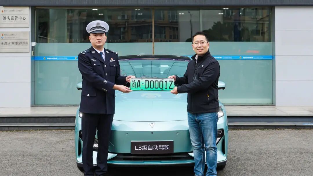 “猜猜这个车牌的特殊含义。”12月20日深夜,长安汽车旗下深蓝汽车董事长邓承浩在微信朋友圈发文并晒出自己和“渝AD0001Z”的合影。“渝AD0001Z”是国内首块L3级自动驾驶专用正式号牌,于2025年12月20日由重庆市公安局交通管理总队授予长安汽车。该号牌将安装在深蓝汽车SL03车型上。