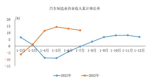 据中国汽车工业协会整理的国家统计局数据显示,2023年1-7月,汽车制造业完成营业收入53148.4亿元,同比增长11.8%,占规模以上工业企业营业收入总额的比重为7.3%。