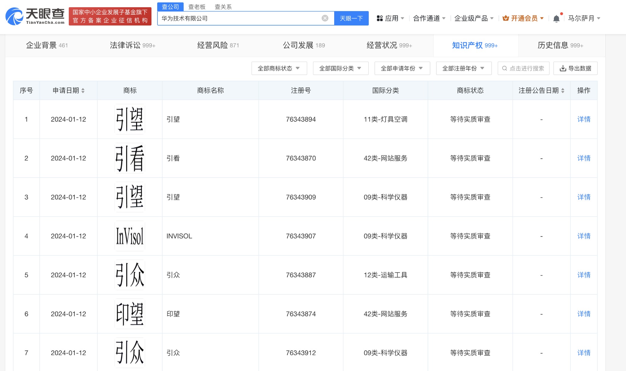 中国经济周刊-经济网讯天眼查App显示,近日,华为技术有限公司申请注册多枚“引望”“引看”“引众”“INVISOL”“INNOWARD”等商标,国际分类包括科学仪器、运输工具等,当前商标状态均为等待实质审查。