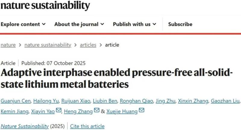 近日,中国科学院物理研究所研究员黄学杰团队联合华中科技大学、中国科学院宁波材料技术与工程研究所等组成的研究团队在全固态金属锂电池界面领域的研究成果发表在国际学术期刊《自然-可持续发展》上。